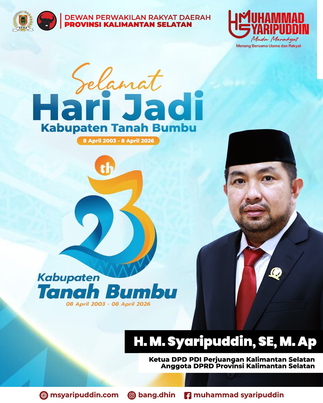 Anggota DPRD Provinsi Kalimantan Selatan Muhammad Syarifuddin Beri Ucapan Selamat HUT Tanah Bumbu ke-23.