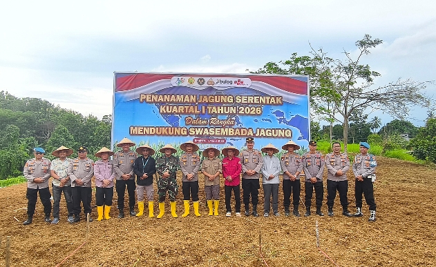 Dalam kesempatan tersebut, Kapolres Tanah Bumbu bersama para undangan juga melaksanakan penanaman jagung secara simbolis sebagai bentuk dukungan terhadap program ketahanan pangan nasional.