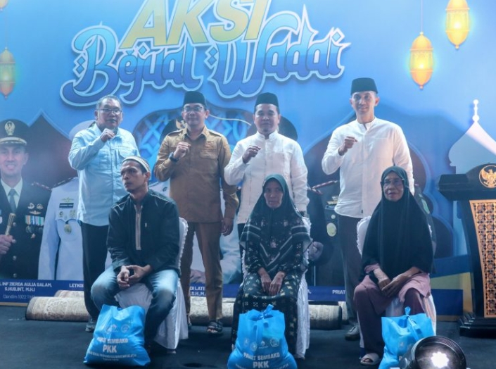 Pada kesempatan tersebut juga dilakukan penyerahan bantuan paket sembako kepada masyarakat, sebagai bentuk kepedulian pemerintah kepada warga yang membutuhkan di bulan suci Ramadan.